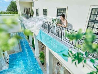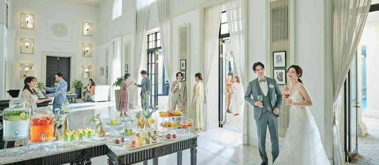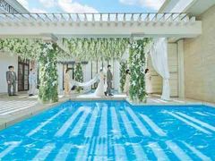 プール付ガーデンは会場とひと続きでお二人のためだけのプライベートガーデン。ケーキカットやデザートビュッフェなど開放感溢れる空間での演出がおススメ!ゲストとの距離も縮まりアットホームなパーティをお愉しみ頂けます!