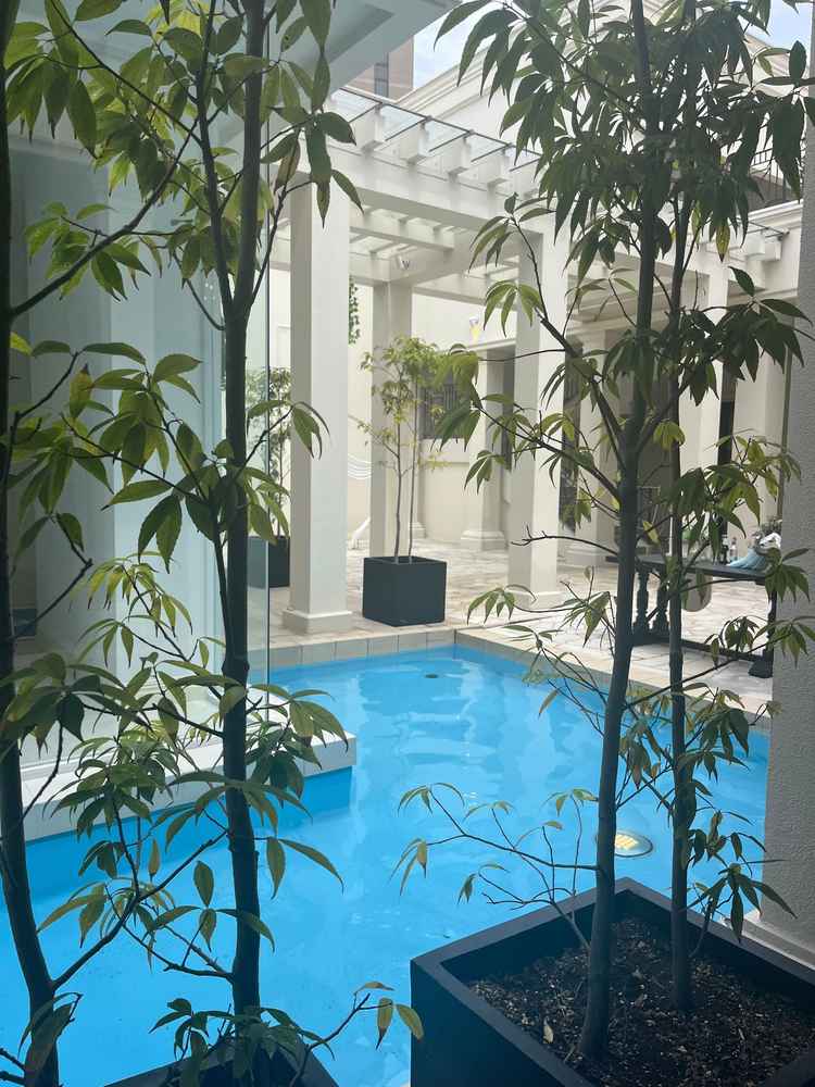 水に浮かんだようなチャペルが綺麗でした。また、全体的に青みがかった色を使用していて、水面を感じさせるような雰囲気でした。 基本的には通路上には屋根があり、全天候型で雨の日も安心と感じましたが、土砂降りだと少し大変そうだとは思いました。