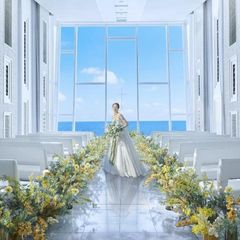 【選べる2つのオーシャンビューチャペルで挙式体験】リゾート感じるガラス張りで開放感あるチャペル、洗練された白亜の上質なチャペル、お好みに合わせてお選びください。挙式後は緑溢れるテラスで優雅なひとときを