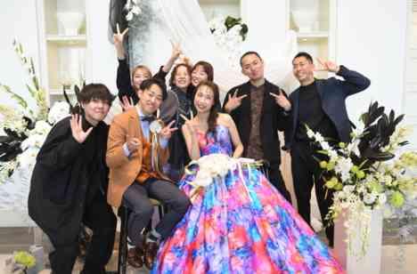 常識にとらわれずにゲストもゆっくり過ごしていただきたい!そんなおふたりの想いもあり、ゲストの服装もカジュアルにすることでリラックスしてお過ごしいただきました。披露宴進行も盛りだくさんにするのではなくゲストと写真をお撮りいただける時間を優先することでこうでなくてはならないというしきたりを気にしない進行を実現。貸切会場にしかできない特別な一日となりました。