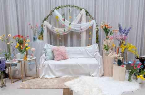 当会場は専属のフラワーコーディネーターがお二人の要望を直接お伺いし、オーダーメイドでお作りさせて頂きます。今回のご新婦様はお花が大好きで装飾には特にこだわりたいとおっしゃって頂いていました。ご新婦様は特にチューリップが大好きで会場はカラフルな雰囲気にしたいとのことで春のお花をふんだんに使用したメイン席となりました。