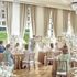大きな窓からのぞくプライベートガーデンの鮮やかな緑と、差し込む太陽の光によって、心地よい開放感に満たされたパーティ会場。上品で落ち着いた印象ながらも自然に心癒される温かな空間で、上質なひと時を。