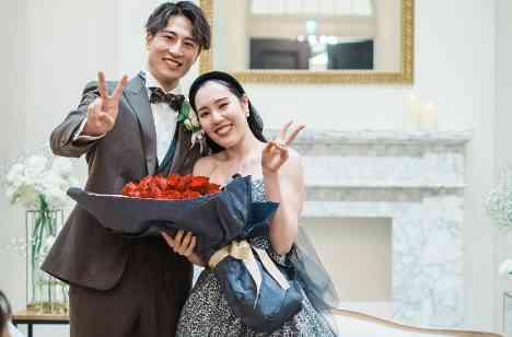 ご新婦様へ改めて感謝を伝えたいとお打合せで仰ってくださっていたご新郎様。そこで、108本の赤いバラの花束をご提案。感謝の気持ち、これからも幸せにしますと言葉で伝え花束をお渡しされました。ご新婦様は涙ながらにとても喜んでいらっしゃいました。会場ではお2人を祝福するあたたかい拍手がうまれ、感動的なシーンとなりました。
