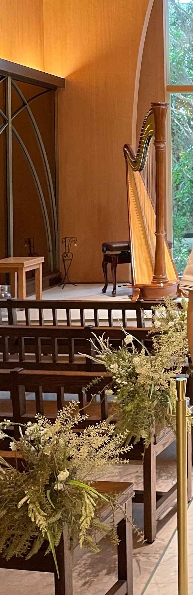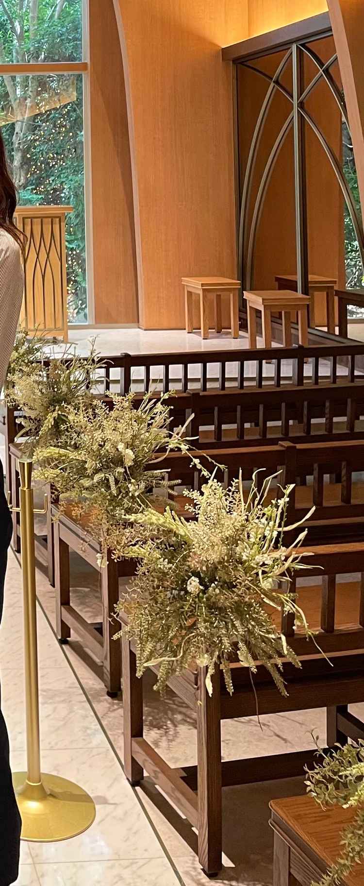 チャペルをはじめとして、披露宴会場からもガーデンの緑が見えて、街の中とは思えないくらい緑あふれる雰囲気だった。