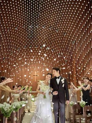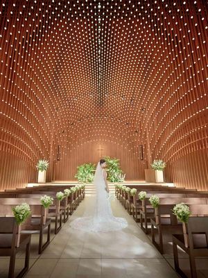 木目調のチャペルには久屋大通公園の緑を一望できるテラスが併設され、入場やヴェールダウンは自然光と豊かな緑を背景にしたセレモニーが叶う。優しい木漏れ日に包まれるようなチャペルでは「結婚」の本質に迫ったオリジナルセレモニーを提案。形式に捉われないオリジナルセレモニーでふたりらしい式を叶えて。
