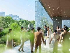 チャペルにはガーデンテラスが隣接。周りの緑とつながるような空間はさまざまな演出を可能に。挙式の後は緑豊かなガーデンテラスで、フラワーシャワーの祝福を受け、ゲストに囲まれる幸せなシーンに。ホテルでありながら、自然を感じる心地よさを。