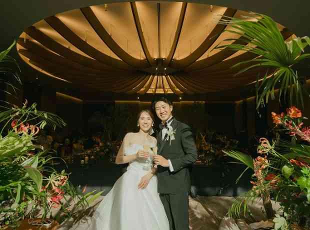 沖縄をルーツに持つおふたりが、これまで大切に育んできた“想い” その想いは、会場の随所に丁寧に表現され 扉が開いた瞬間、沖縄らしいあたたかさと鮮やかな色彩を感じさせる フラワーコーディネートがゲストを迎え、 思わず声があがるほどの感動的な空間が広がりました。 そこには、おふたりが歩んできた背景と、これから紡いでいく未来への願いが重なり合う、温もりあふれるひとときが生まれていました。