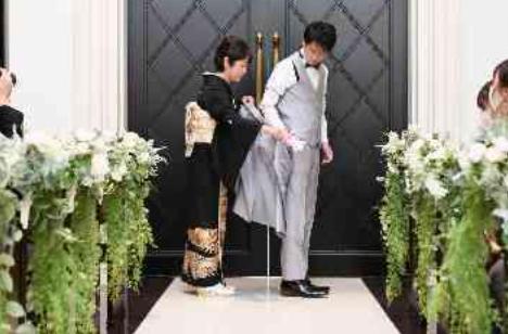 新郎様の挙式入場時に大切に育ててくれた凄く大好きなお母様にジャケットセレモニーを行って頂きました。 入場時は お母様と手を繋ぎながら入場をして頂き 挙式前には新郎様からお母様にこれまでの感謝の想いをお手紙でお伝え頂いているからこそ挙式中にお母様が涙される等 温かく素敵な雰囲気が広がっておりました。
