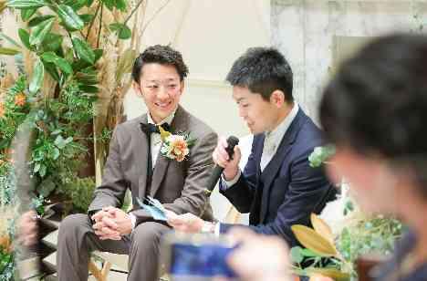 ご友人スのピーチは、新郎新婦側それぞれお二人の隣に座って頂いて行って頂きました。離れた場所からのスピーチではなく、隣で聞けるからこそ感じる想いや温もり、そして表情の変化。共通のご友人や職場の同僚や先輩もご自身のお席から立ちあがり、お二人の近くでお写真を撮ったり、スピーチを聞いている方もいらっしゃり、笑顔や涙が溢れるひとときになりました。
