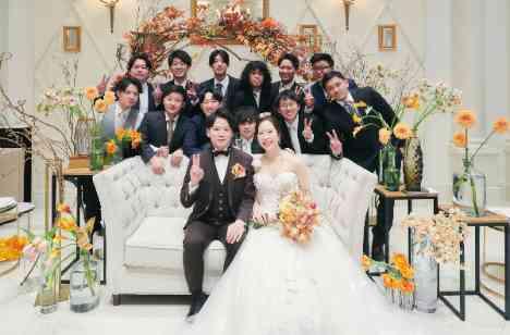 【お2人らしいオリジナルメインソファー】 メイン席はお写真が撮りやすさやアットホームさを演出する為に、ソファー席に♪ さらに背景にアーチをご用意することで全体が華やかになりました。 ゲスト全員の楽しそうな表情が印象的で、お2人のお席に友人様もご一緒にお座りになられ撮影も楽しそうでした。お2人の幸せいっぱいの時間でした。