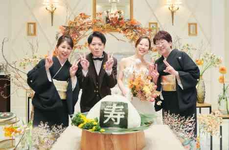 【おにぎりバイト~お母様から愛情を~】 お2人がご希望頂きましたのはケーキ入刀ではなく、おにぎりバイトです。いつもお母様がつくってくれたおにぎりが印象的で大切な思い出と伺っていました。 おにぎりに入刀後は、お母様からおにぎりをつくって頂きラストバイトを♪ お母様の幸せそうな表情が印象的でした!