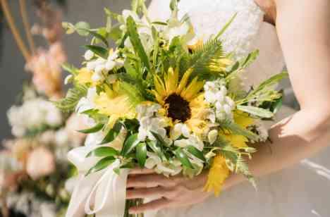 当日はゲストと私たちもリラックスして、笑顔が溢れる結婚式にしたい。テーマカラーは黄色とオレンジを入れたビタミンカラーでコーディネート!大好きなヒマワリをポイントで入れたブーケは今でもお気に入り☆パーティー会場内はオレンジやイエローと中心にサファリベージュとサーフブルーを差し色にした8月ならではのコーディネートにしました!