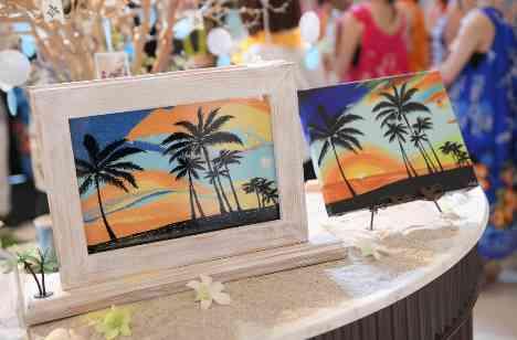 受付の時間にゲストの方々に結婚の承認として砂を入れてもらい、挙式中にお二人の親御様とお二人に入れてもらい結婚証明書が完成いました。サンドセレモニーの額は新婦様の親御様に作って頂き、ロビーの装飾の一部としてもゲストの方々に見ていただきました。