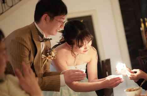 会場全体がだんだんと温かい気持ちになってきた再入場後には、ゲスト全員が温かな気持ちで繋がっていくようにキャンドルリレーを行いました。全員のキャンドルに火が灯ったら、この温かな幸せがずっと続くように想いを込めてブローアウト。