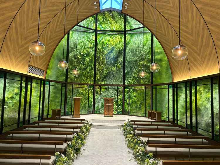 緑に囲まれたきれいなチャペル | ニーズ心斎橋 by T&G WEDDING(旧 アルモニーアンブラッセイットハウス)