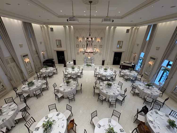 コンパクトな挙式会場でした。バージンロードが少し狭めかも?披露宴会場は広かったです。高砂の布を巻いている感じが少しチープな感じ。