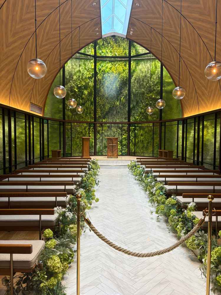 ガーデンが好きな方にはチャペルやチャペルの外の部屋も緑を感じれるので素敵だと思います。また、全体的に開放感のある会場でした。