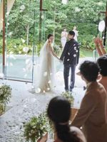 水上に浮かぶアクアチャペルからの退場は、シンボルツリーに向かって伸びる水上に浮かぶバージンロードを進む。一生に一度の結婚式だからこそ、花嫁にとって忘れられない特別な時間になること間違いなし!ゲストからの祝福を受けて笑顔溢れる瞬間に。