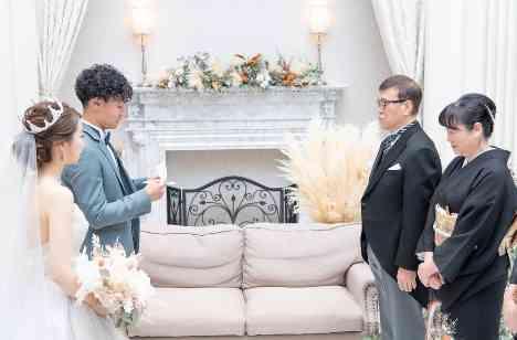 挙式前おふたりのこだわり装飾が詰まった披露宴会場にてファミリーミートを行いました。普段はなかなか素直にお言葉を伝えることができないおとおっしゃっていた新郎様から親御様へ感謝のお手紙。新郎様からの素直な感謝の言葉に、親御様も思わず涙を流されていました。バージンロードを歩かない新郎親御様にも、育ててくれた感謝と親元からの卒業を伝えるたいせつな時間です。