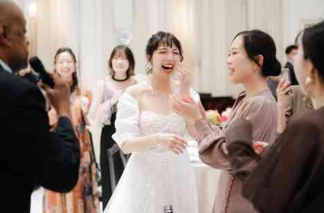 披露宴スタートは、新郎新婦の入場と共に、ゴスペルシンガーの生歌パフォーマンスでスタートいたしました。 列席ゲストも全員総立ちし、音楽にのせて、新郎新婦もハイタッチしながらゲストと楽しんで過ごされました。 披露宴のスタートからゲストの心の温度をぐっと上げ、この後の披露宴の時間を距離感近く進めることができました!
