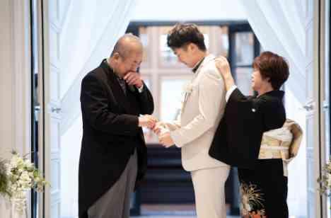 緊張の面持ちのご家族と新郎新婦様。 バージンロードを歩く際は、親御様にもリラックスをして当時を思い出しながら歩いていただきたい。そんな想いをこめて実施しました。 恥ずかしがりながらも衣装の感想やご親族様のご様子などをお話しながら過ごされていました。 挙式のタイミングでは、緊張もほどけて幼いころを思い出しながら涙ながらに新郎様を送り出されていました。