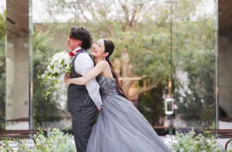お色直しのドレスを内緒にしていた新婦様。新郎様の反応を楽しみにセカンドミートへ。披露宴も半ば、緊張をしていたおふたりもリラックスをしてきたため、急遽セカンドミートは新婦様に思いっきり新郎様に抱き着いてもらいました。お互いの衣装について、感想を言い合いながら過ごされました。場所を変えてのセカンドミート。クリアなチャペルと緑の自然に囲まれて、フォトジェニックな写真タイムも楽しんでもらえました。