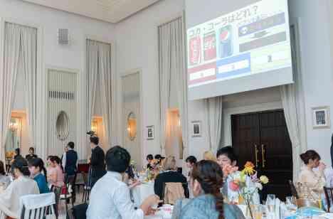全員参加型の演出を行いたい!披露宴時間中、随所で各付けチェック大会を行いました。コース料理でご提供中のお魚料理で使用している魚料理は何か、であったりドリンクの飲み比べ、スクリーンに映し出されている絵は誰が描いた絵なのか、様々なコンテンツを考えゲストの皆様に一日盛り上がりながらお楽しみいただくことが出来ました。