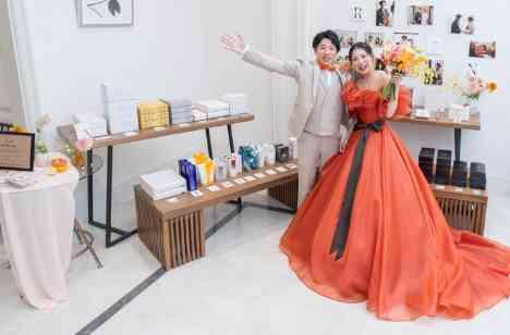 引出物がお席に置いてある=この常識を覆す、引出物マルシェ。せっかくプレゼントを贈るなら、好きなものを選んでほしい!という思いから、数十種類に渡る商品を並べ、お好きなものやお菓子を選んで持ち帰ってもらう引出物マルシェを実施。女性に嬉しいヘアケアアイテムから、メンズシューケアセット等豊富なラインナップでゲストの皆様もお喜びの中の送賓風景となりました。