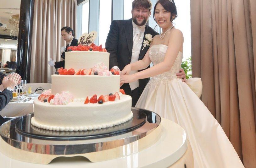 披露宴中はゲストとの歓談をメインにしたかったので、余興もなしでしたが楽しい時間はあっという間で中座の時間になってしまいました。新郎が英国出身ということでしたので、イギリスらしいお料理もコース内に組み込んでいただき、とても素敵なコースをご提案いただきました。ケーキカットのデザインもシンプルな中にも、よく見るとクリームを桜の形に絞っていただいて、かわいいサプライズになった思います。