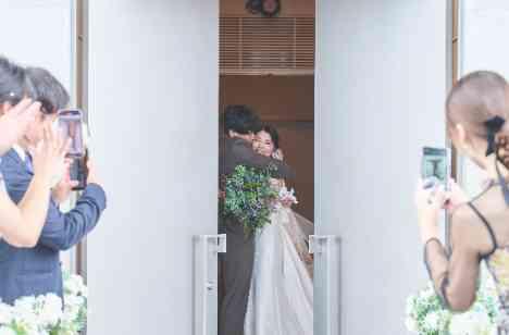 挙式のご退場時に新婦様の憧れ『クロージングキス』を行いました。ゲストの皆様も思わず携帯電話で写真撮影・ビデオ撮影したくなるような心でつながる『ハートフル』な瞬間を作り出すことができました。クロージングハグで、ご新郎様が新婦様へ愛の気持ちをハグで表現し、ゲスト皆様がアットホームな盛り上がるシーンとなりました。
