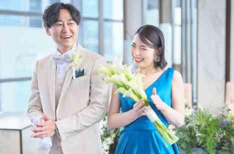お色直し前と後とでは雰囲気をガラッと変えたいとご希望だったお二人。ご新郎様もタキシードをチェンジし、明るいお色味へ。ご新婦様は華やかなターコイズブルーに合わせ、ヘアチェンジも行い、大変身!!ゲスト全員が再入場時には驚くほどの反応と、素晴らしい反響で大盛り上がりでした!!!ご新郎様がヘアカットしたとか?!