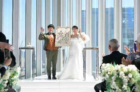 挙式形態は人前式でした。ゲストの皆様に証人いただけるよう、結婚証明書はお二人オリジナル作成の『ボタン』を証明書に! ゲストの皆様一人一人に異なるボタンをピックアップしてもらい、貼り付けていただきました。世界一のオリジナル結婚証明書の作成にゲスト皆様で作り上げた素晴らしい証明書となり、素敵な人前式となりました。