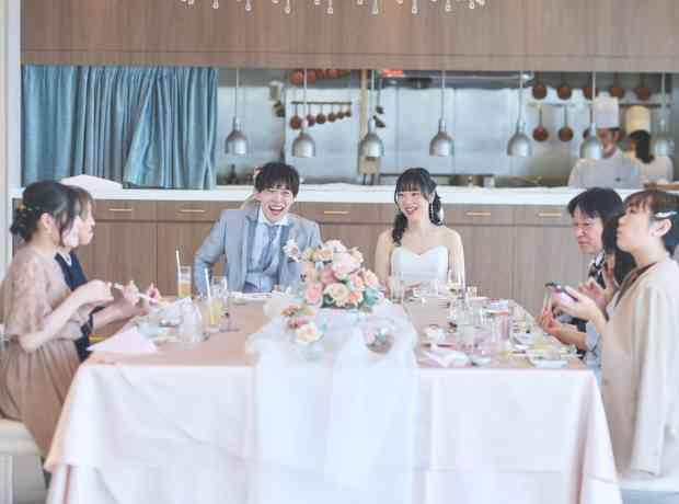少人数ご検討のお客様には、オープンキッチンがある披露宴会場をご提案させていただいております。ご両家のご家族様同士もお料理を通して会話を楽しまれる様子や、五感で楽しんでいただくこともできます。また、出来立てのお料理をご提供させていただいておりますので、ご好評もとても良いです。アットホームな披露宴会場でたくさんのおもてなしができる披露宴会場は、ゲストにも新郎新婦様にも大好評いただいております。