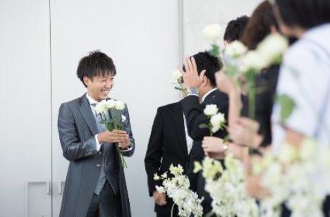 サービススタッフになりきって自らゲストの皆さんへとお酌周りをするという演出でした☆ 過度な演出ではなく、皆さんと過ごす時間が沢山ある方が良いと思い一番近い距離で叶えられる演出となり、笑顔&笑顔の写真をたくさん残すことが出来ました♪