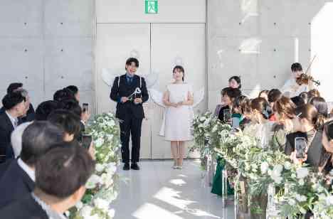 キリスト教式だから何もできない、そんな常識を覆す進行。お二人の共通の知り合いに、サプライズで天使の羽を身に付けてリングプレゼンターをしてもらいました。共通の知り合いが多い結婚式だからこそ、ゲストも大盛り上がりで楽しい和やかな雰囲気となりました。「結婚式はこうでなくては」ではなく「お二人だったら」をベースにご提案させていただきます。