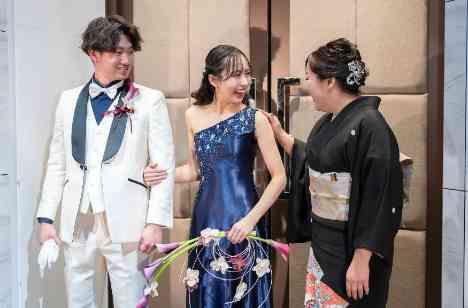 ご新婦様のカラードレスは新婦お姉様の手作りでした。結婚式をご決定する前から『結婚式をするならお姉ちゃんに作ってもらう』そう思っていたご新婦様。フィギュアスケートの衣装はすべてお姉様が作成されていたため『集大成をカラードレスに込めて』作成していただきました。再入場は世界で一つのカラードレスとご新婦様の大好きなBGM、こだわったブーケを持ってお姉様へのお手紙と共にご入場された感動の空間でした。