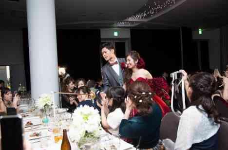 お色直し入場の時にキャンドルサービスをしました。ゲストの近くに行くことができるし、皆さんから直接お声をかけていただけたので、とても楽しかったです。また、日が落ちた時間帯だったので、窓からはイルミネーションの光が美しく、幻想的な雰囲気の中、行うことができました。