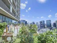 自由に行き来できるガーデンスペースでは、都心をバックにゲストとの写真撮影やバルーンリリースなどの演出をお楽しみいただけます。開放感あふれる空間はゲストも自然とリラックスでき、和やかな時間に。