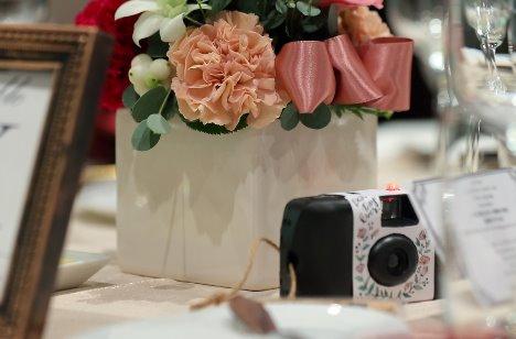 付き合った当初は毎月の記念日に手紙交換をされていたおふたり。 結婚準備を進める中で、その時のことを思い出したり、小さい頃の写真を見返したり…後に見返すことが出来るものがある大切さも知りました。 結婚式はおふたりにとって特別な日になるからこそ、写真・映像ともに残し、ゲストの皆様にも自然体を映してもらえるよう各卓にもインスタントカメラをご準備されました。 皆様との思い出は一生の宝物になるハズ!