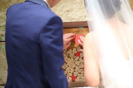 ゲストの皆様におふたりの結婚を認めてもらう人前式だからこそ、皆様と一緒に創り上げて記念になるものを…とおふたりはハートドロップスをご用意されました! 挙式本番でおふたりの名前をはめ込んで完成したドロップスは、新居に大切に飾る予定です^^