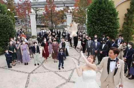 幸せになりたい女性の方、集まれ~! 新婦様から幸せのお裾分け、ブーケトスです♬ お二人の幸せを次につなぐのはどなたか・・・ そんな大盛り上がりの演出です。 女性の方だけでなく、小さなお子様も大変喜んでいる楽しそうな時間となりました! 大階段を使用してのブーケトスは映画のワンシーンの様に素敵です☆