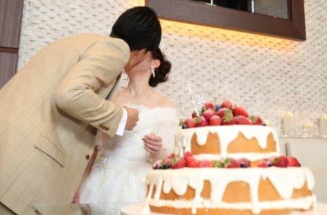 ファーストバイトのシーンではハンカチで拭くのではなくここもやはりご新郎様からの愛でした♡ とっても盛り上がりこちらもとっても素敵なシーンとなりました♡ そしてご新婦様がとてもこだわり当館のパティシエが心をこめて手作り致しましたネイキッドケーキもとても可愛くスタッフにも好評でした!