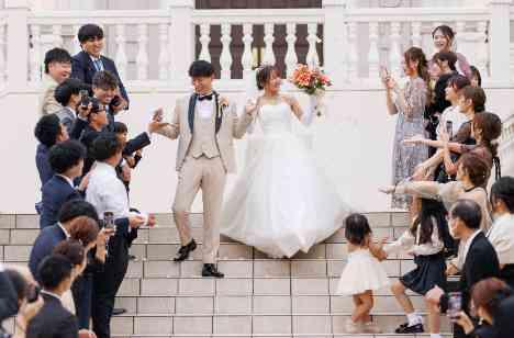 幸せ溢れるこれからの結婚生活を誓い合った 挙式後のセレモニーでは 大階段を活用し記憶に残るようなロマンティック演出... お二人の大切なゲストの皆様が花びらを両手に 『おめでとう!』が溢れるフラワーシャワーの祝福を♪ 新婦様が幼い頃から夢見ていた結婚式の憧れが きっと素敵に叶うこと間違え無しです♡