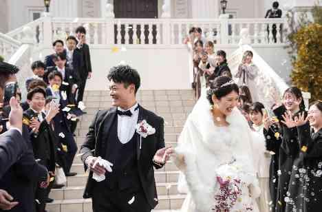 挙式後は花嫁様の幼い頃からの憧れが詰まった大階段セレモニーを♪ 大切なゲストの方々ばかりが集まった祝福の中 花道を歩くお二人の笑顔が本当に素敵に輝いており ゲストの皆様も満面の笑みでお過ごしいただいておりました。 きっとその瞬間は一生忘れられることのない 特別な瞬間になったこと間違えなしです!