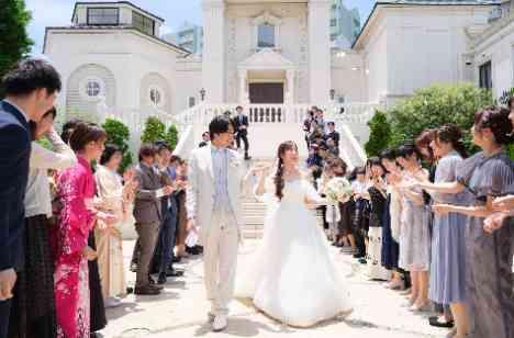 挙式を結ばれると大階段のセレモニーへ。祝福のフラワーシャワーと「おめでとう!」の声に包まれながら笑顔いっぱいに新郎新婦様が階段を降ります。その後はゲスト全員を対象に、ぬいぐるみトスの演出も。よりリラックスした雰囲気に包まれたところで写真タイムも設け、新郎新婦様とゲスト間でのアットホームさをより感じやすい時間となりました。