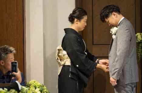 挙式はチャペル ラヴェイユにて教会式を執り行いました。木のぬくもりを感じるナチュラルな雰囲気の中、挙式は新郎様と新郎お母様のジャケットセレモニーから始まります。ゲスト皆様にあたたかく見守られながらお母様にジャケットを着せていただく新郎様。これから始まる愛を誓い合う式に向けて、お母様もとても丁寧にお支度を整えている姿がありました。