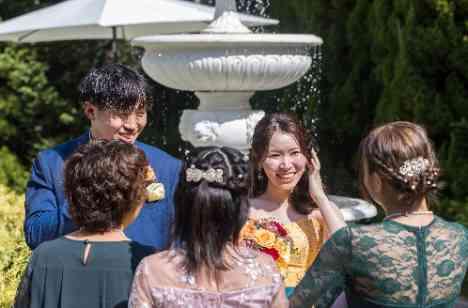 ガーデンで過ごす時間が欲しいと仰っていたおふたり。後半の歓談の時間はガーデンでのフリータイムとし、写真撮影を楽しまれている姿が見受けられました。会場内ではケーキセレモニーや歌の余興を進行に組み込み、テーブルを順番に周る内容も。室内と外での時間を両方取り入れることで進行にもメリハリが出たり、雰囲気を一新することができるのでとても素敵なアイデアですね…♡