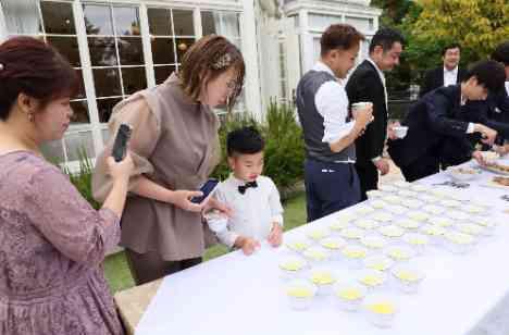 楽しみにされていたのは演出だけでなくこだわった料理も…♡ゲストにはお酒が好きな方も多いとのことで、コース料理の締めにラーメンビュッフェをすることを決められました。ゲストの皆様には、ガーデンに並べられた麺の入ったお椀をお持ちいただき、具材と出汁を自分好みにカスタマイズ♪幅広い世代の方に喜んでいただけるラーメンは、おふたりらしさ溢れるオリジナリティ満載なアイデアです!
