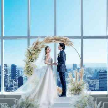 晴れた日には遠く生駒山系まで見渡すことができる、地上150mに位置する天空のチャペル。訪れたゲストも一目惚れをする美空間で、映画のワンシーンのような記憶に残るセレモニーを。