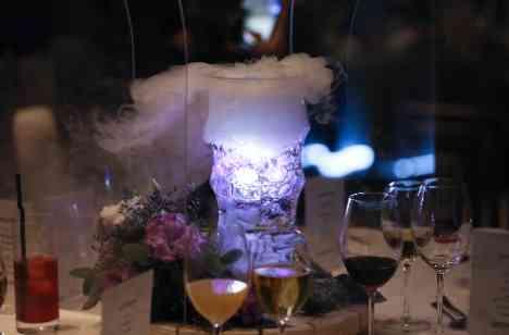 ゲストの皆様に驚き、楽しんでもらいたいとの想いでお選び頂いたこちらの演出。お色直し入場のタイミングでゲスト様に金色のたまごと巾着をお渡し。巾着の中にはキューブが入っていました。司会者の合図でテーブルの真ん中にあった水の中に一斉に投入すると卓上がまるでライブ会場に!ゲスト様にもご参加頂く事で会場内は大盛り上がり!記憶に残る素敵な演出となりました。